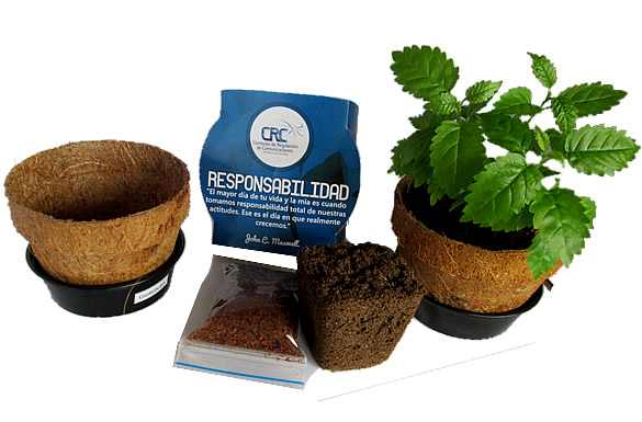Disponible con matera de coco, en caja de regalo, en caja germinadora o en kit corporativo de huerta.