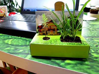 - Al regarlo comienzan a crecer plantas en diferentes lugares de la cajita Pop Up, generando un nuevo paisaje vivo y natural.