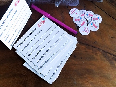 Se debe marcar con el plumón que incluye, cada rotulador o «palito» con el nombre de la planta.